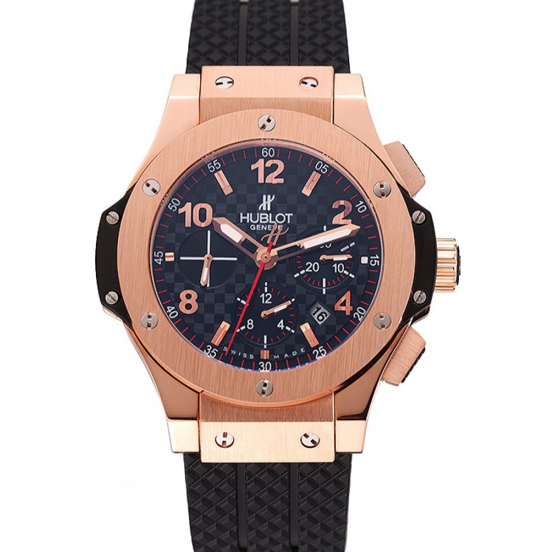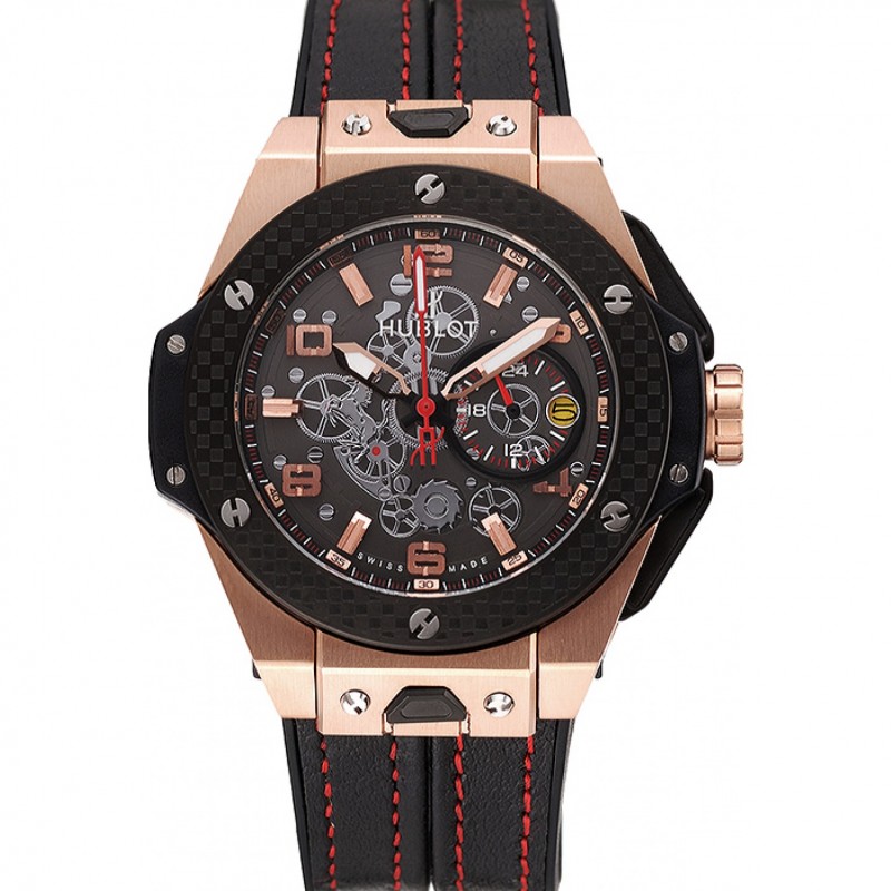 Pas Cher Suisse Hublot Big Bang Effet Carbone Cadran en caoutchouc noir boîtier en or rose Bracelet 1453897