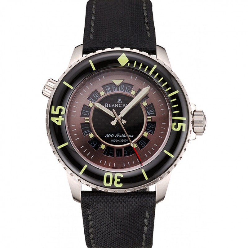 Suisse Blancpain 500 Fathoms GT fibre de carbone Cadran Boîtier en acier inoxydable noir Bracelet en toile