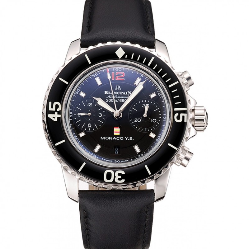 SS Suisse Blancpain Air Command Monaco YS cadran noir Boîtier en acier inoxydable Bracelet en cuir noir