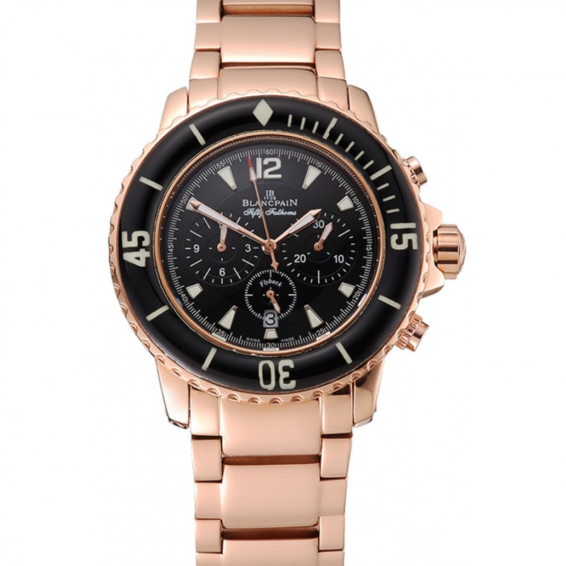 Blancpain Fifty Fathoms Chronographe Flyback Cadran Noir Or Rose Et Bracelet 1453772