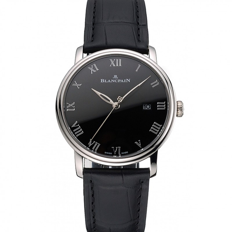 Blancpain Villeret Ultra Slim cadran noir Boîtier en acier inoxydable Bracelet en cuir noir