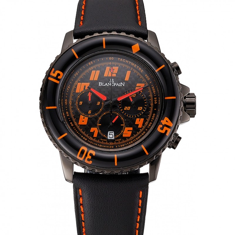 Blancpain Fifty Fathoms Speed Dial Commande carbone fibre avec PVD noir orange Marquages cas bracelet en cuir noir 1453776