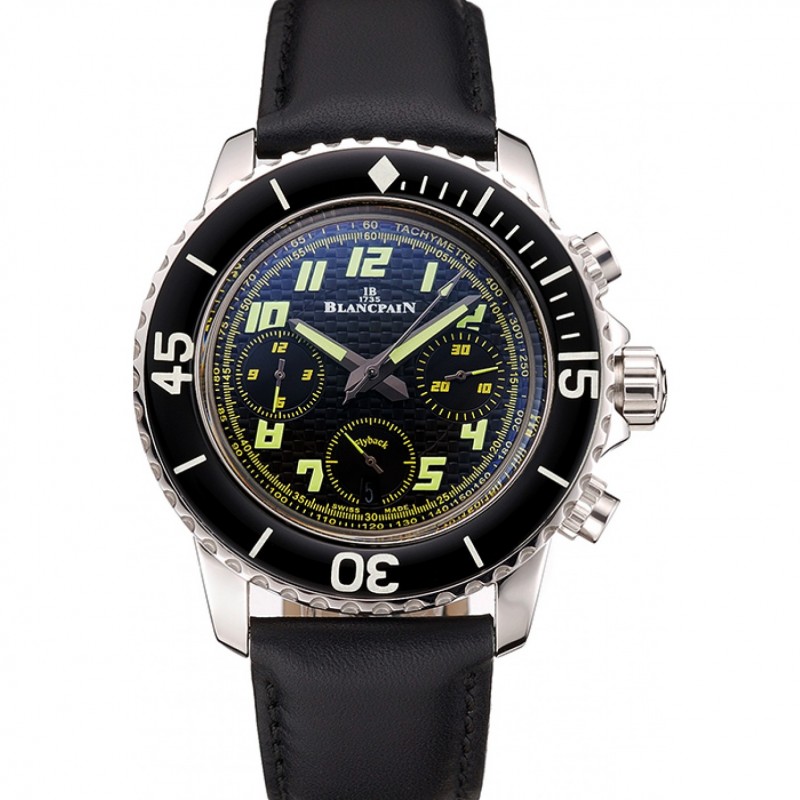 Suisse Blancpain Fifty Fathoms Chronographe Flyback en fibre de carbone Cadran Boîtier en acier inoxydable Bracelet en cuir noir