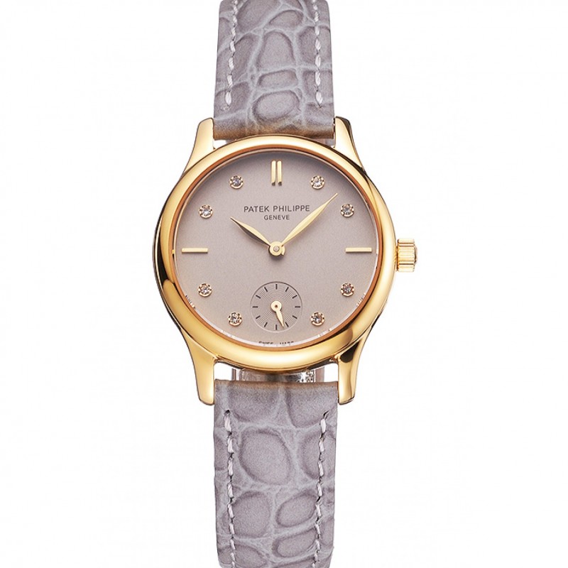 Haute qualité Replique Montre Patek Philippe Calatrava cadran gris diamant Marquages or rose gris Bracelet en cuir