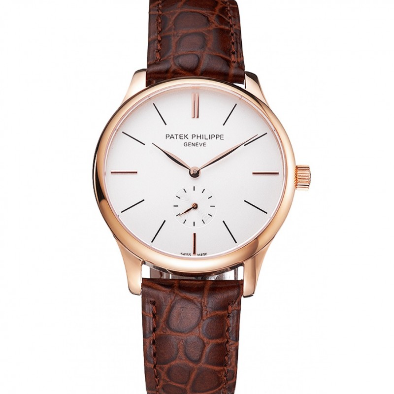 Patek Philippe Calatrava cadran blanc or rose bracelet en cuir brun