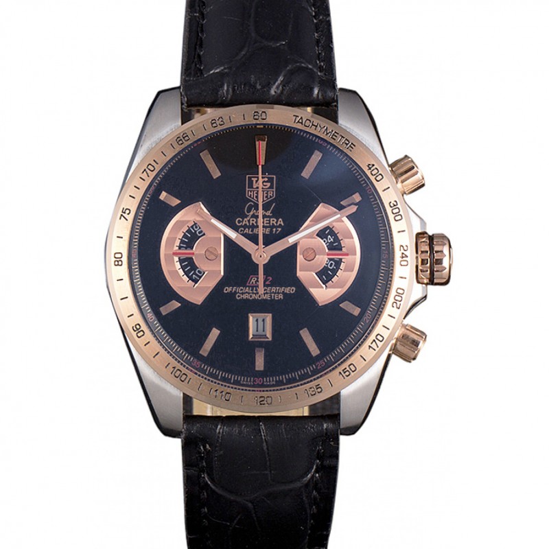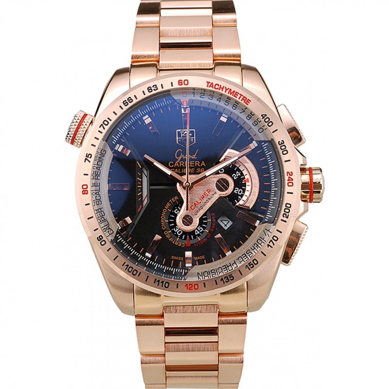 Luxe Replique Montre Tag Heuer Carrera Or Rose cadran noir