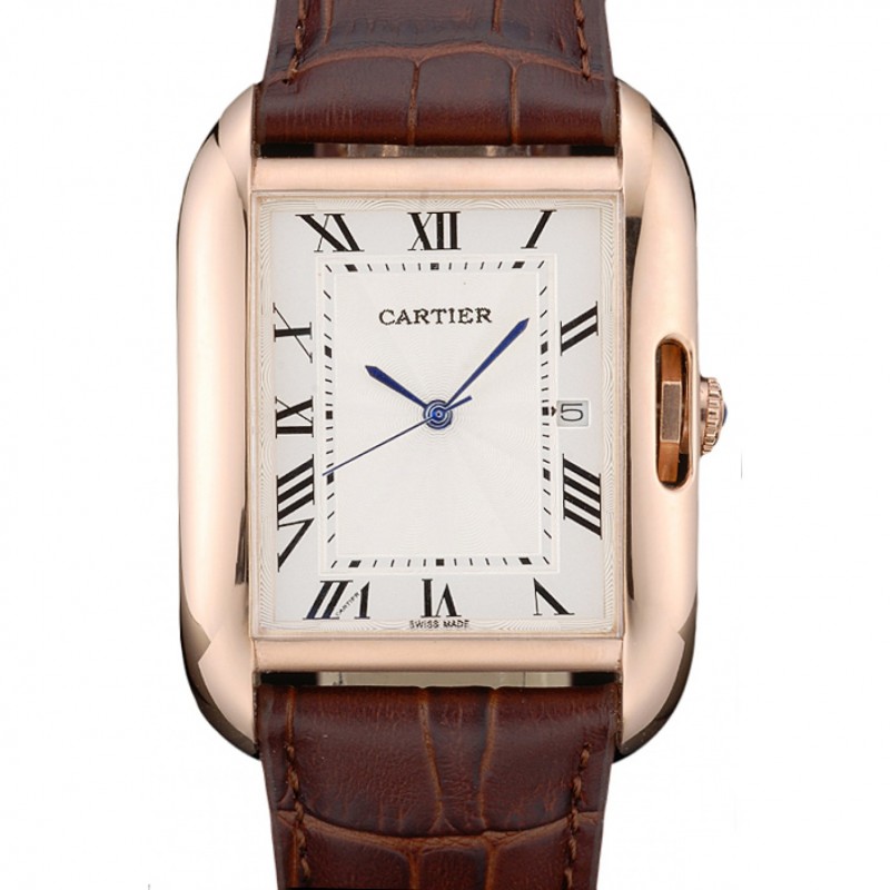 Cartier Tank 36mm Cadran Blanc Anglaise Or Marron Bracelet en cuir