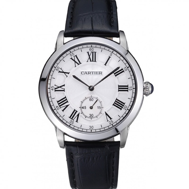 Cartier Ronde Louis Cadran Blanc bracelet en cuir noir 621977