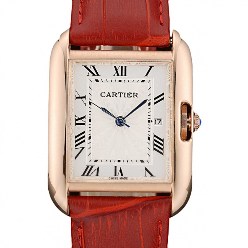 Luxe Cartier Tank 30mm cadran blanc Anglaise boîtier en or rouge Bracelet en cuir