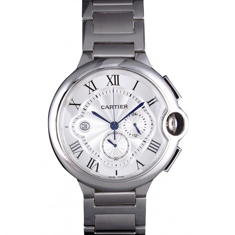 Cartier Ballon Bleu Chronographe Cadran Blanc Boîtier en acier inoxydable et le bracelet