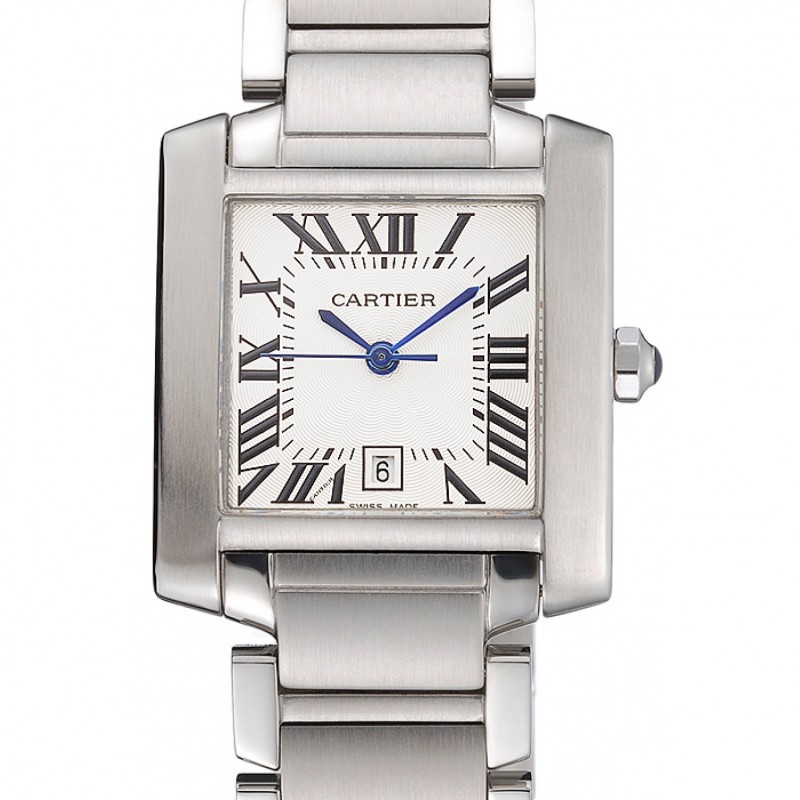 Suisse Cartier Tank Francaise Boîtier en acier cadran blanc chiffres romains Bracelet en acier inoxydable 622649
