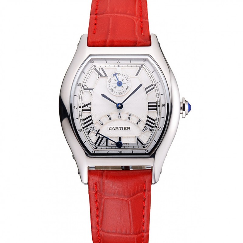 Cartier Calendrier Perpétuel Blanc Tortue Cadran Boîtier en acier inoxydable Bracelet en cuir rouge
