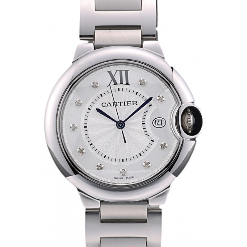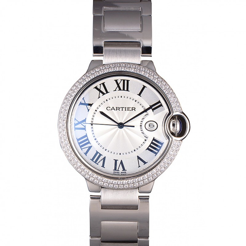 Cartier Ballon Bleu 44mm Diamants Cadran blanc Boîtier en acier inoxydable et le bracelet