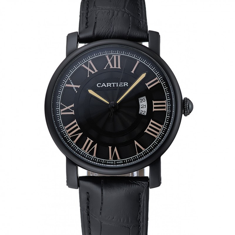 AAA Cartier Cadran Noir Housse Rotonde Noir Bracelet en cuir 1454218