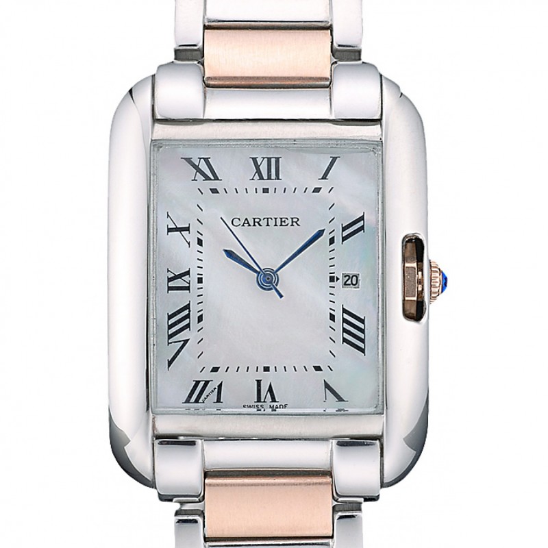 Cartier Tank 30mm cadran blanc Anglaise Boîtier en acier inoxydable Bracelet Deux Tone