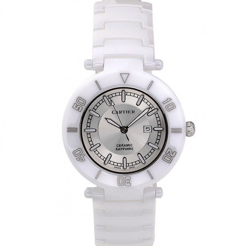 Cartier Pasha 39mm cadran argenté blanc boîtier en céramique