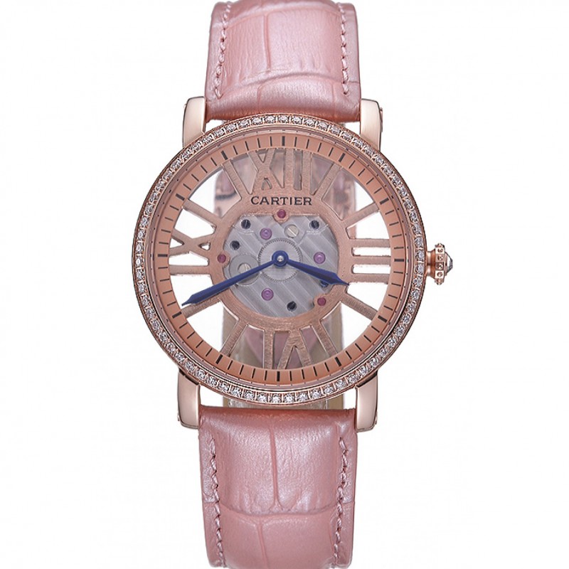 SS Replique Montre Cartier Tourbillon Volant Squelette Rotonde Lumière Rose 621960