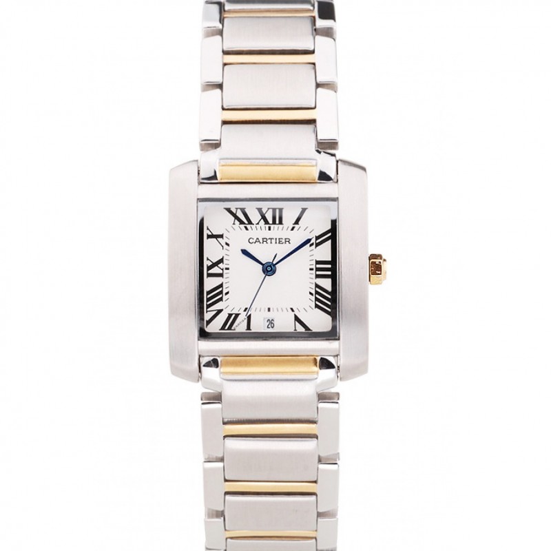 SS Replique Montre Cartier Tank Francaise 29mm Cadran Blanc Bracelet Deux Tone Boîtier en acier