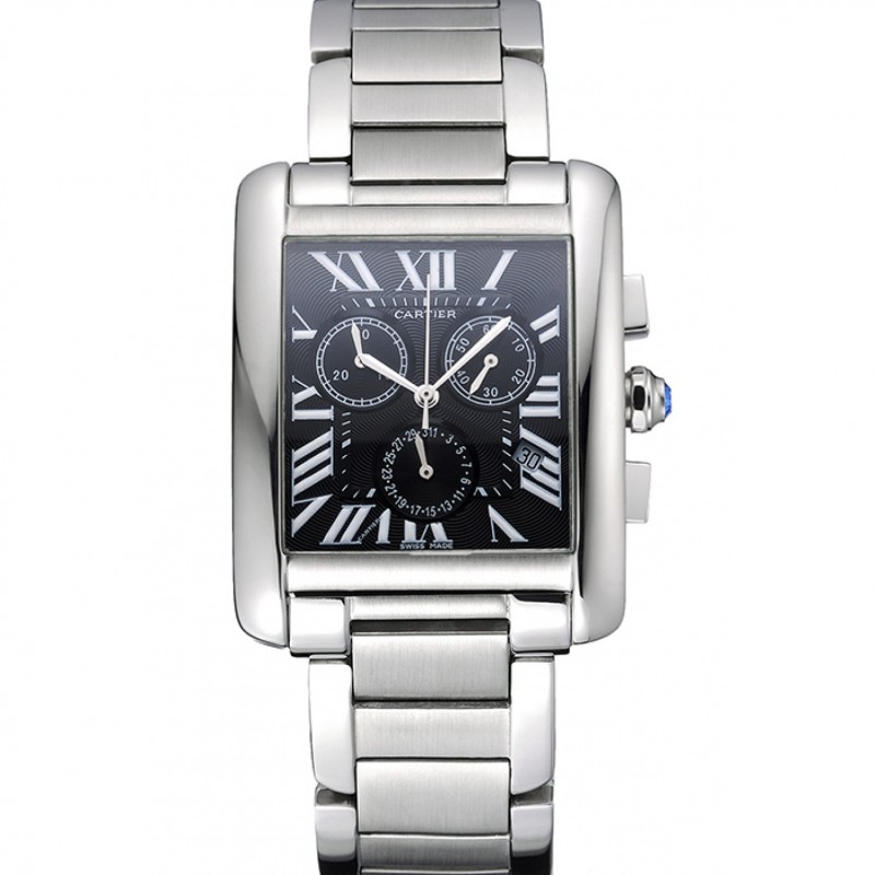 Cartier Tank MC cadran noir Boîtier en acier inoxydable et le bracelet 622698