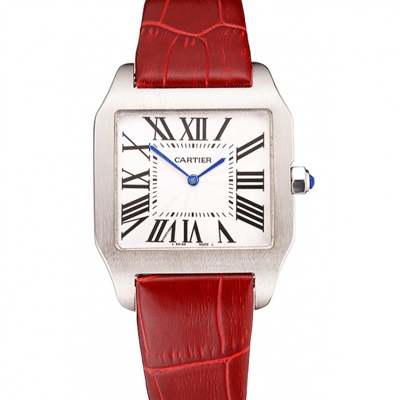 Suisse Cartier Santos Dumont diamant Case cadran blanc chiffres romains noir Bracelet en cuir 622652