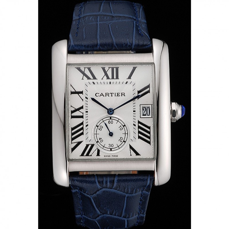 AAA Cartier Tank MC cadran blanc Boîtier en acier inoxydable bleu bracelet en cuir 622575