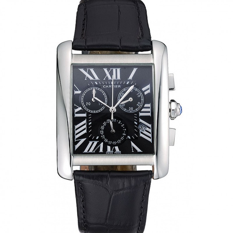 Cartier Tank MC cadran noir Bracelet en cuir noir Boîtier en acier inoxydable 622690