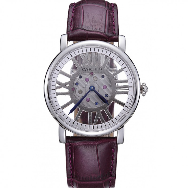 Haute qualité Replique Montre Cartier Tourbillon Volant Squelette Rotonde Violet 621971