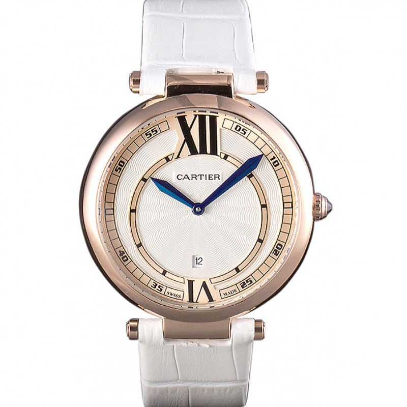 SS Replique Montre Cartier Blanc et noir Rotonde Cadran Boîtier Noir Bracelet en cuir 1454219