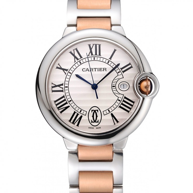 Luxe Suisse Ballon Bleu de Cartier cadran blanc chiffres romains Boîtier en acier Bracelet Deux Tone 622646