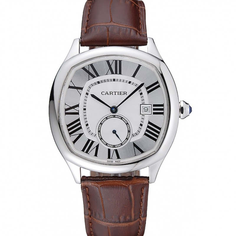 Pas Cher Replique Montre Cartier Cartier Blanc De Disque cadran argenté Marron Bracelet en cuir 1454210
