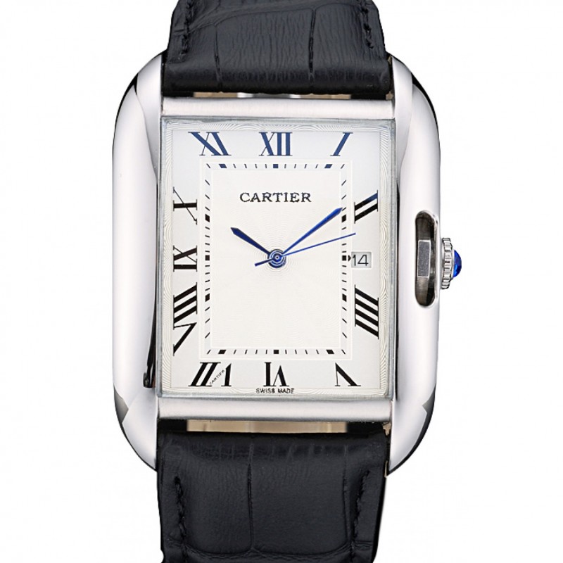 Cartier Tank 36mm cadran blanc Anglaise Bracelet en cuir Boîtier en acier inoxydable noir