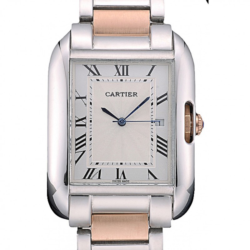 Cartier Tank 36mm cadran blanc Anglaise Boîtier en acier inoxydable Bracelet Deux Tone