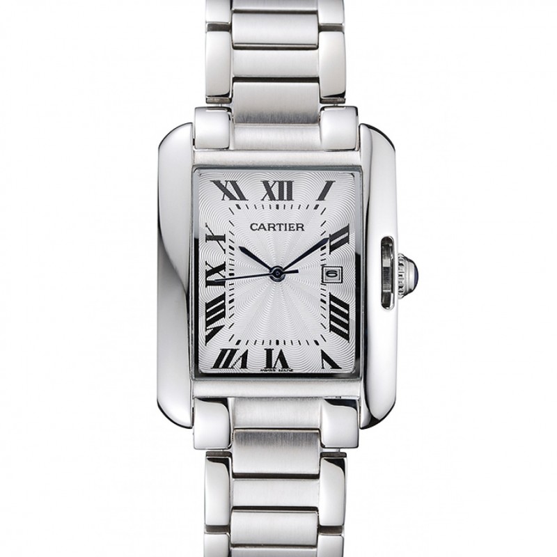 Cartier Tank 30mm cadran blanc Anglaise Boîtier et bracelet en acier inoxydable