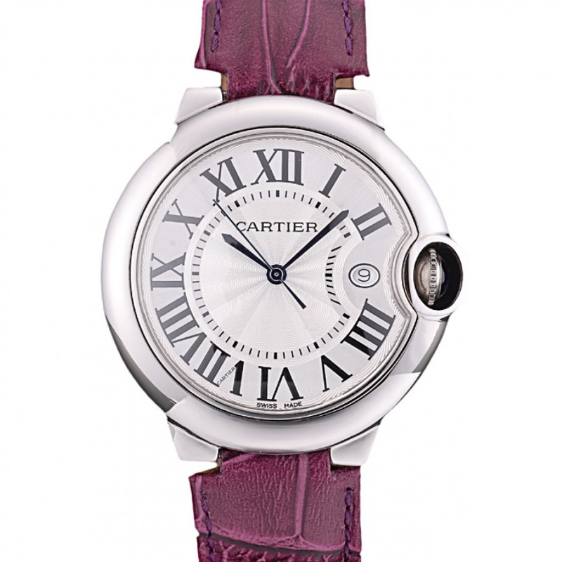 Cartier Ballon Bleu 38mm Cadran Blanc Bracelet en cuir Boîtier en acier inoxydable Violet