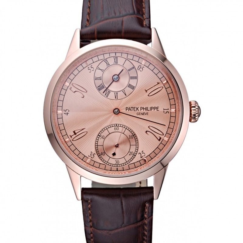 Patek Philippe Geneve Deux Cadran Rose Cadran lunette en or rose Brown bracelet en cuir 622149