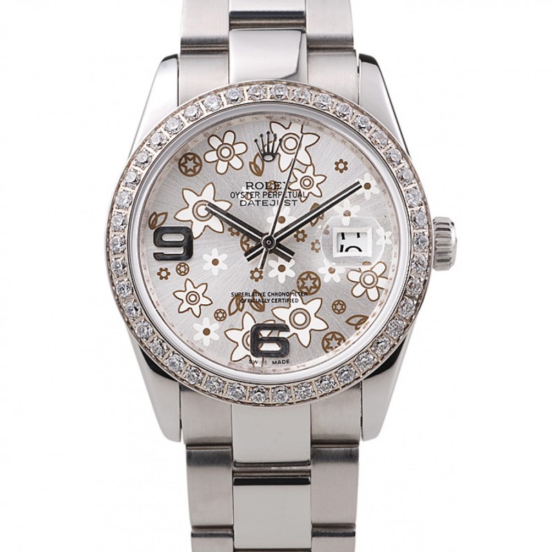 Rolex Datejust en acier inoxydable Fleurs d’argent Cadran rl305 diamant plaqué