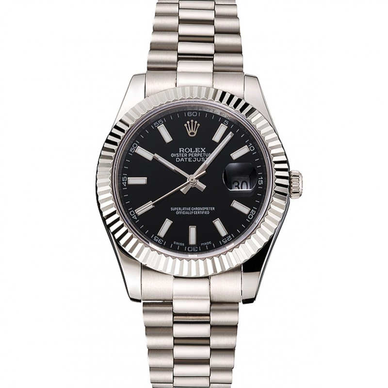 Swiss Rolex Datejust cadran noir boîtier en acier inoxydable et bracelet
