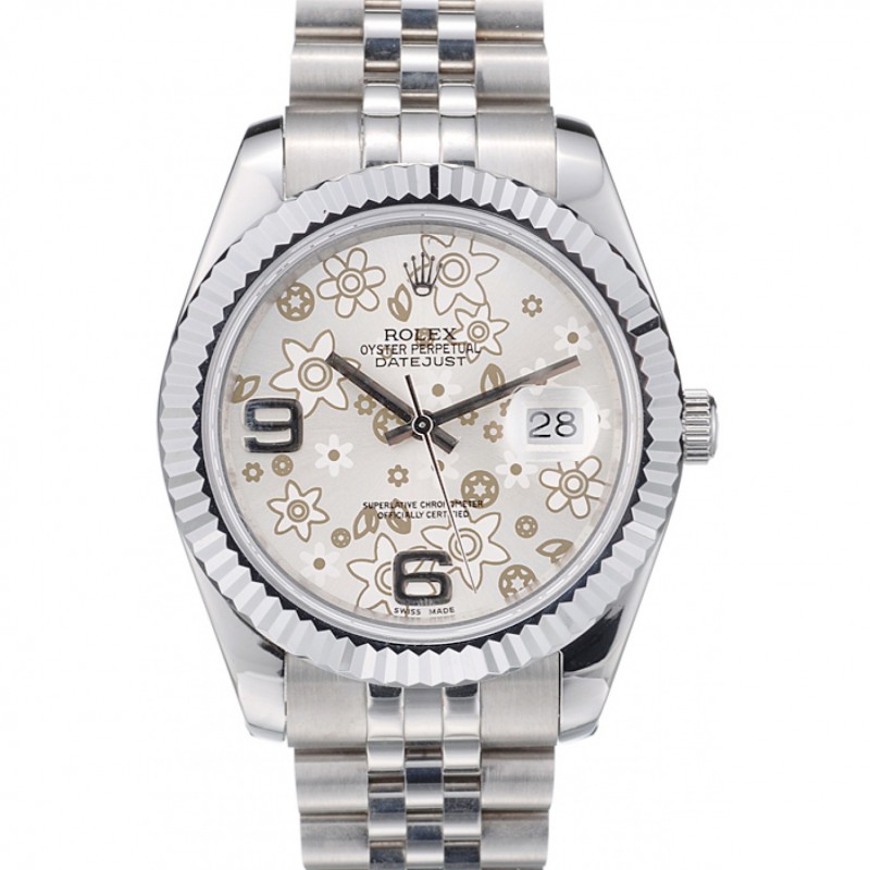 Acier inoxydable Rolex Datejust nervuré Lunette Fleur Cadran Argent 41983