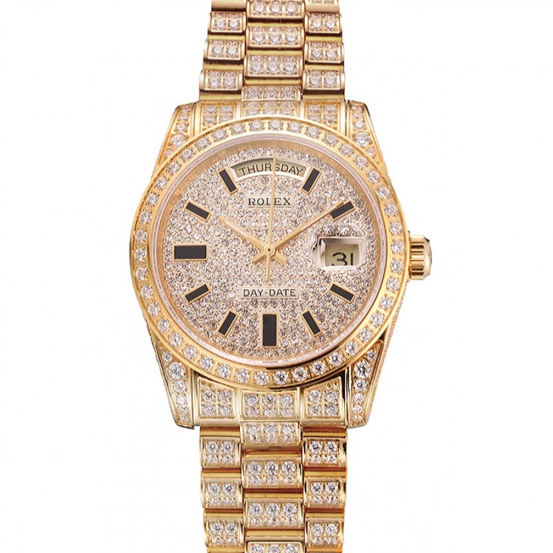 Rolex Day suisse Date or jaune Full Diamond Pave
