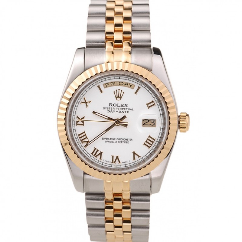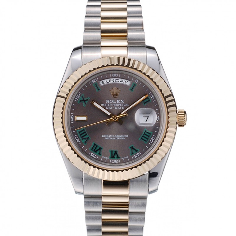 Acier Rolex Swiss DayDate or inoxydable nervuré Lunette Cadran Gris 41909