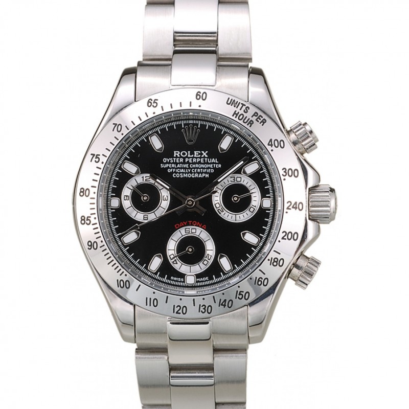 Bracelet en acier inoxydable Rolex Daytona suisse cadran noir 80296