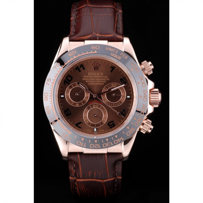 Cas Rolex Daytona en or rose cadran brun bracelet en cuir brun