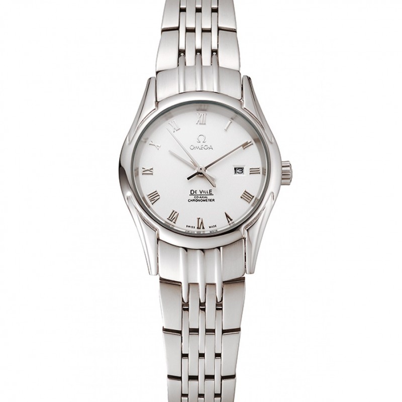 Omega De Ville Ladies Cadran Blanc Cas en acier inoxydable chiffres romains et bracelet 1453792