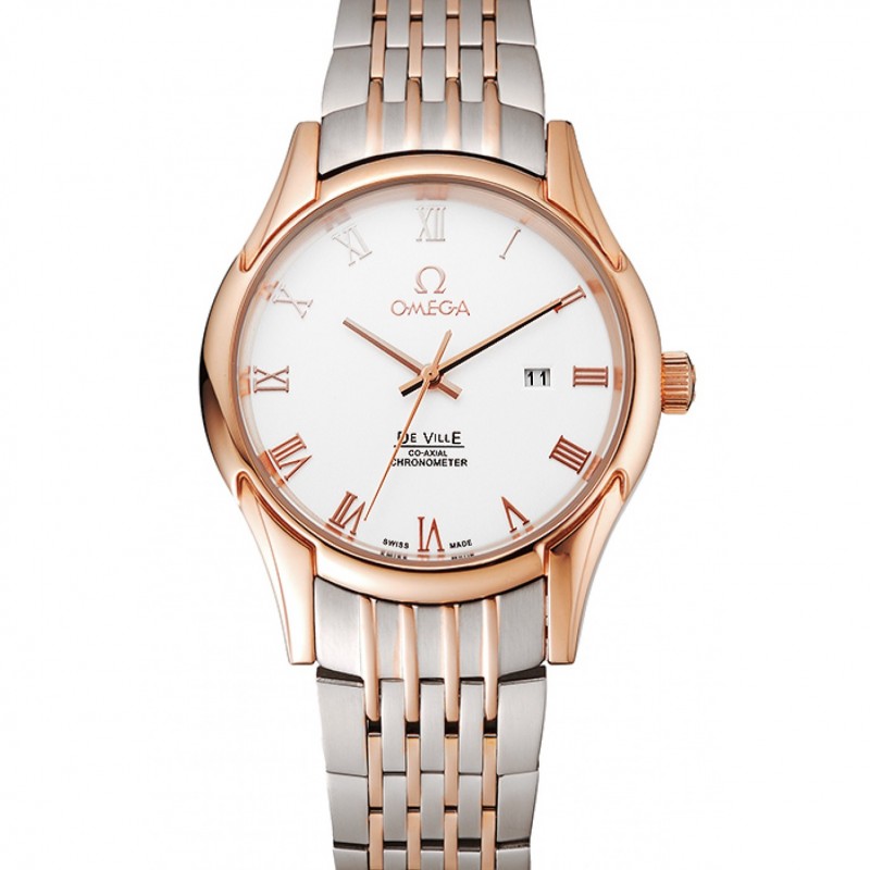 Omega De Ville Cadran Blanc boîtier en or rose Bracelet Deux Tone 1453781