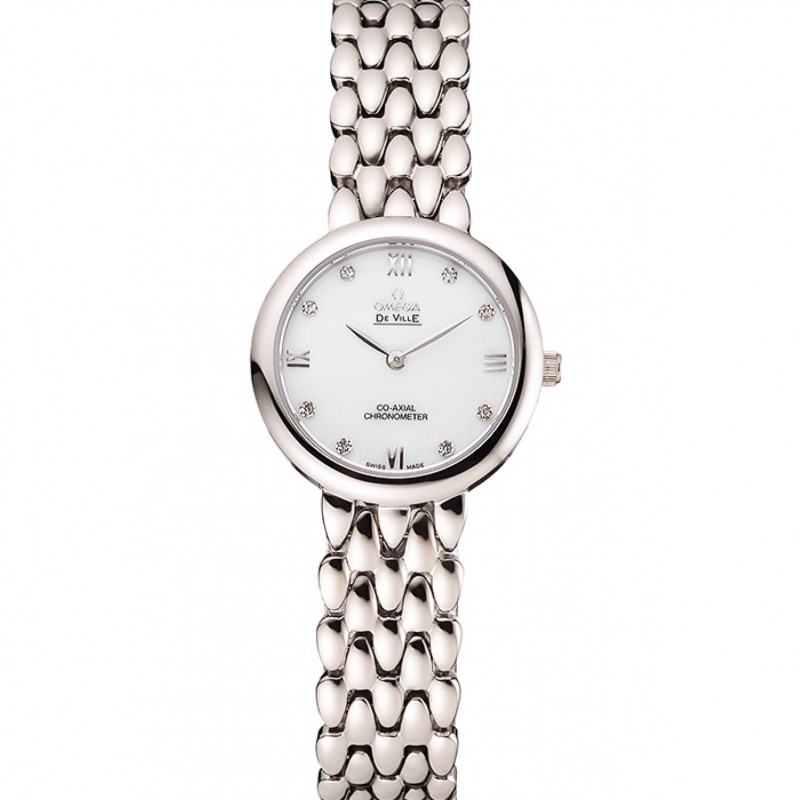 Pas Cher Omega De Ville Prestige Non Date cadran blanc avec des diamants Boîtier en acier inoxydable et le bracelet