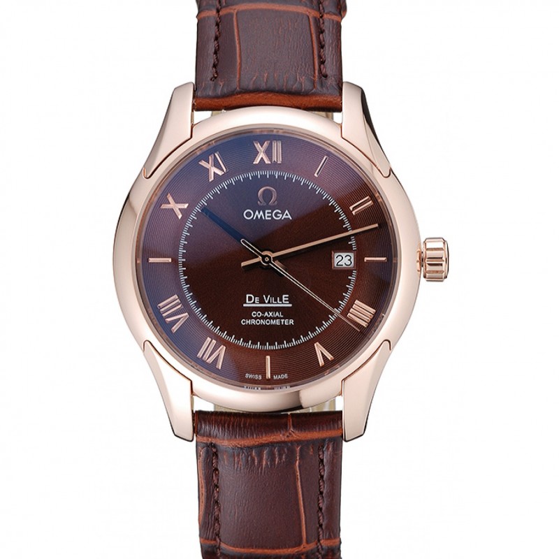 Omega DeVille cadran brun boîtier en or bracelet en cuir brun 622831