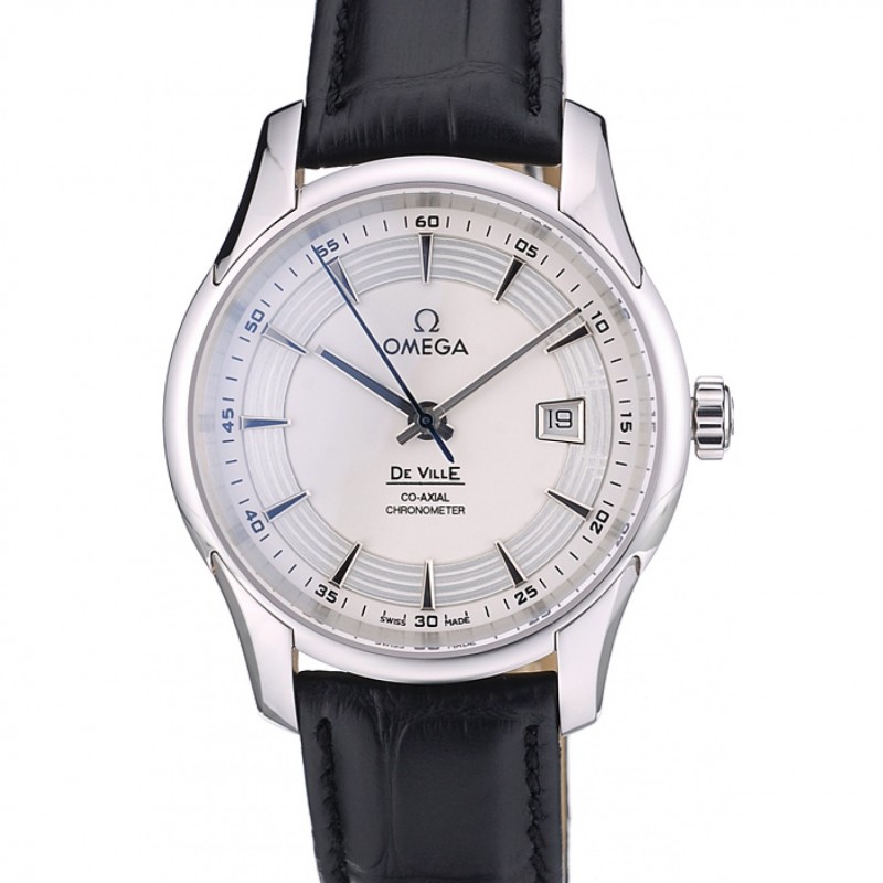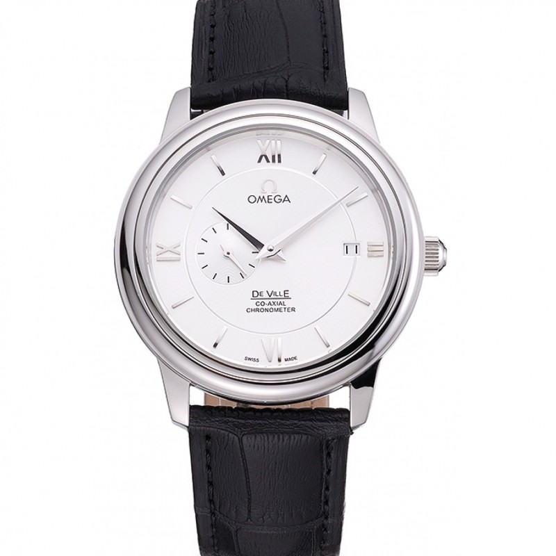 Omega De Ville Co-Axial Prstige Cadran Blanc Argent Boîtier bracelet en cuir noir romaine numéral