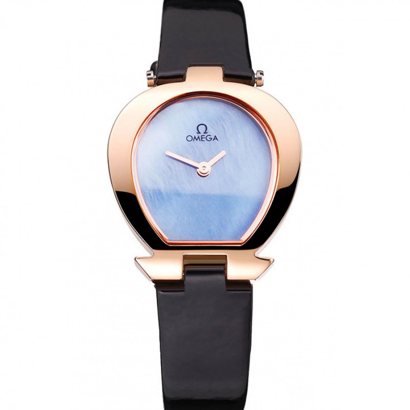 Meilleur Omega Ladies Watch cadran bleu ciel boîtier en or bracelet en cuir noir 622821