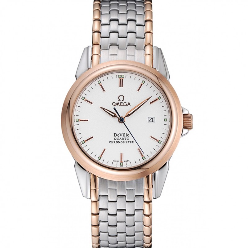 Luxe Replique Montre Omega De Ville Ladies cadran blanc boîtier en or rose Bracelet Deux Tone 1453782