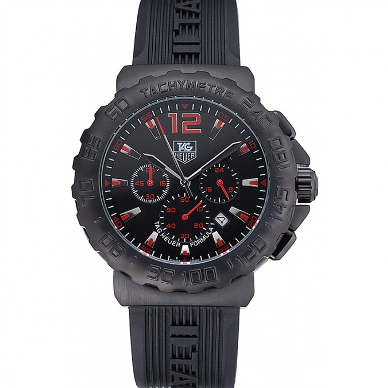 AAA Tag Heuer Formula 1 Chronographe Cadran Noir Lunette Noir Rouge 622408 Numerals
